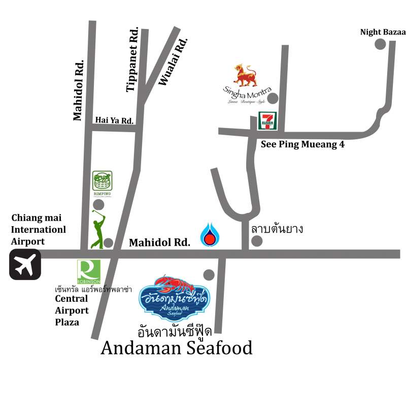 อันดามันซีฟู๊ด บุฟเฟต์อาหารทะเลตามสั่ง สั่งได้ตามใจ ไม่อั้นสดๆ ร้อนๆ อร่อยทุกอย่าง เพียงท่านละ 249 บาทกับเมนู 200 กว่ารายการ เช่น ปลากะพงฉ่าน้ำปลา กุ้งแม่น้ำเผา ปลาเก๋าสามรส ปลาหมึกไข่นึ่งมะนาว ห่อหมกทะเลมะพร้าวอ่อน กุ้งแช่น้ำปลา หอยนางรมทรงเครื่องฯลฯ สถานที่ตั้ง ถ.มหิดล อยู่ห่างสนามบินเชียงใหม่ 300 เมตร (ถ้ามาจากสถานีตำรวจภาค5 อยูู่ก่อนถึงสี่แยกเซ็นทรัลแอร์พอร์ต 200 เมตร ตรงข้าม ปั๊มคาลเท็กซ์ และปั๊ม ปตท.) สอบถามรายละเอียดโทร 061 2670111, 061 2650666, 081-5363624, 084-4065844, 053905041Face book http://www.facebook.com/AndamanSeafoodRes https://www.facebook.com/andamanseafood สามารถรองรับลูกค้าได้ 500 ท่าน สามารถจอดรถได้มากกว่า 100 คัน และ รถทัวร์ได้มากกว่า 10 คัน ที่ร้านมีโปรต่างๆ ดังนี้ค่ะฉลองเข้าสู่ปีที่10 "อันดามันซีฟู๊ด" จึงขอมอบโปรดีๆโปรสุดคุ้ม มา4จ่าย3 วันนี้-30ตุลาคม 2557 โปร อันดามันซีฟู๊ด 249฿ บุฟเฟ่ต์อาหารทะเล + กุ้งขาว(กับเมนูให้เลือกทาน เกือบ 200รายการ) 399฿ บุฟเฟ่ต์อาหารทะเล + กุ้งแม่น้ำ + หอยเชลล์+หอยหลอด (กับเมนูให้เลือกทาน เกือบ 200รายการ) 499฿ บุฟเฟ่ต์อาหารทะเล + กุ้งแม่น้ำ + หอยเชลล์+หอยหลอด + กั้ง +ปูม้า(กับเมนูให้เลือกทาน เกือบ 200รายการ) 599฿ บุฟเฟ่ต์อาหารทะเล + กุ้งแม่น้ำ + หอยเชลล์+หอยหลอด + กั้ง + ปูม้า+ ปูนิ่ม (กับเมนูให้เลือกทาน เกือบ 200รายการ) อิ่มอร่อยกับเมนูที่หลากหลาย เอาใจทั้งเด็กและผู้ใหญ่ ได้ที่ "อันดามันซีฟู๊ด" ใกล้สี่แยกสนามบินเชียงใหม่ เปิด16:00-23:00 โทรจองโต๊ะ 091- 4813579, 0844065844, 0815363624, 053905041 เวลา 13:00-23:00 เด็กสูงไม่ถึง 80cmฟรีคะ เด็กสูง81-135cm คิดครึ่งราคาคะ ถ้าสูงเกิน135cm ขออนุญาติคิดราคาผู้ใหญ่คะ โปรโมชั่นข้างต้นอาจมีการเปลี่ยนแปลง กรุณาโทรสอบถามรายละเอียดก่อนได้ที่เบอร์ 061 2670111, 061 2650666, 0815363624, 053 905041รีวิว จากลูกค้าที่เคยทานค่ะ www.facebook.com/andamanseafoodres